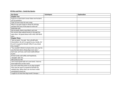 Analysis And Quotes To Revise Candy In Of Mice And Men For The Gcse And Igcse English Exam